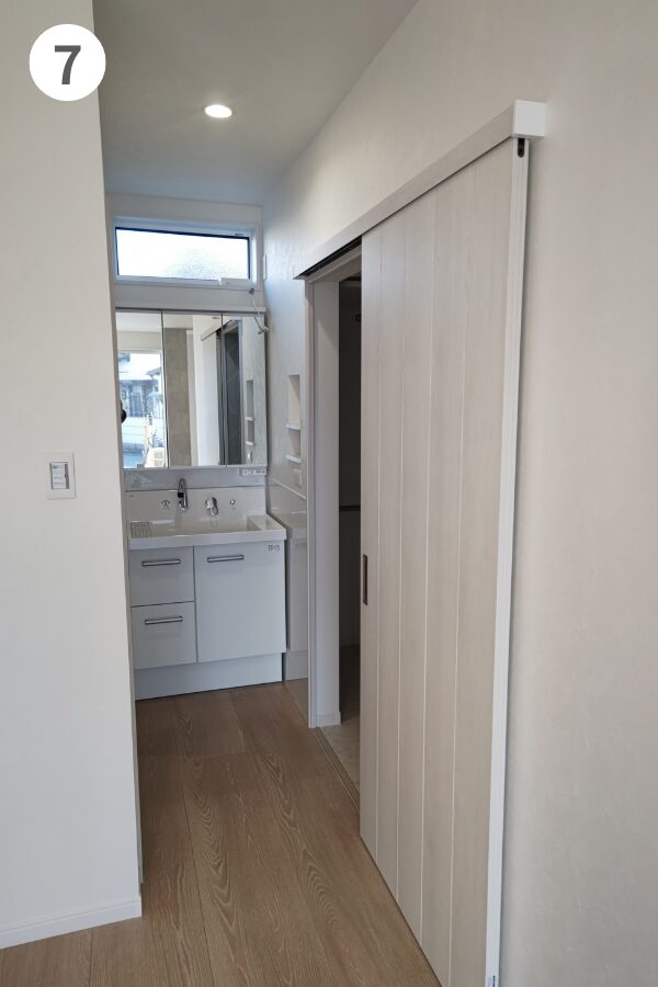⑦【LIXIL社製洗面化粧台】 脱衣室の外に設置
